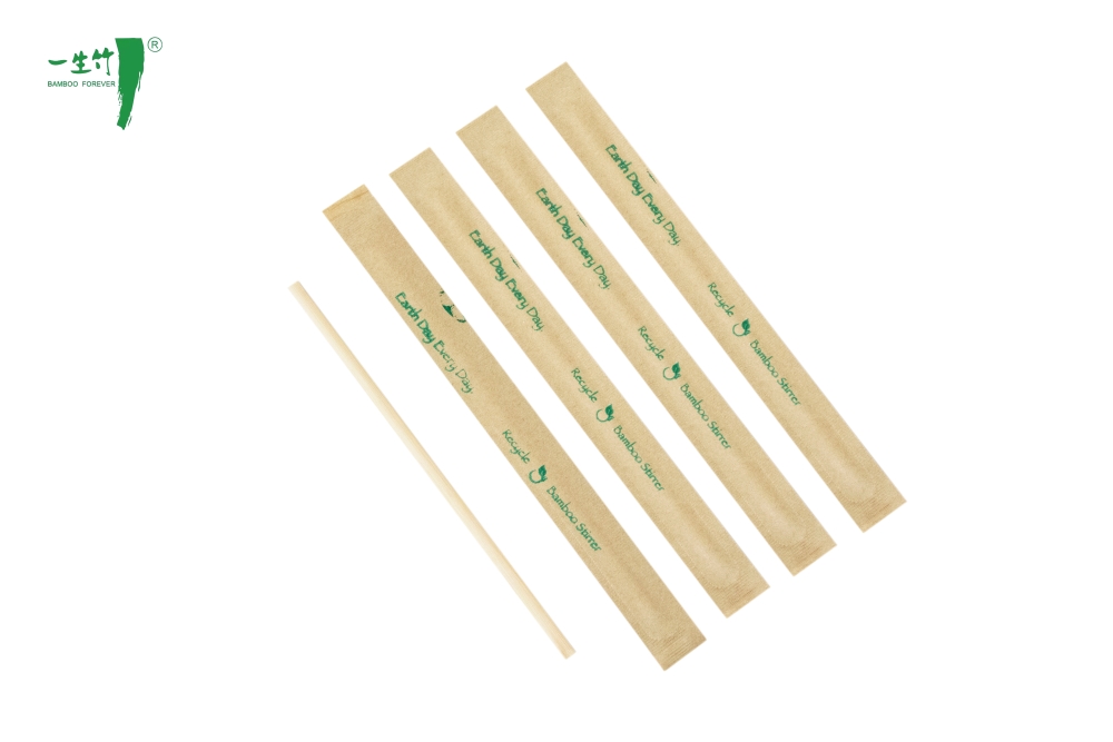 Papierummantelter Bambus-Kaffeerührer Einzelverpackt