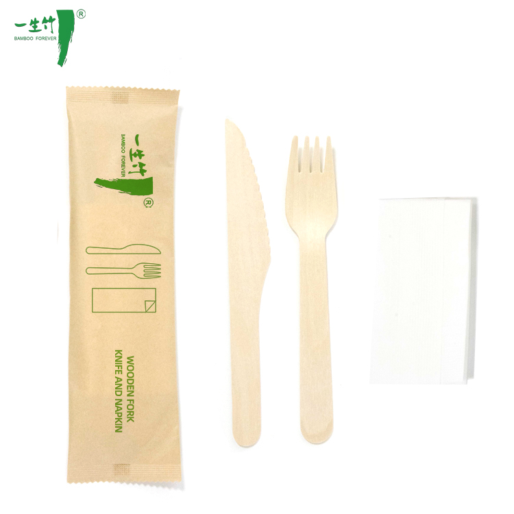 Einweg-Holz-Besteck einzeln papierverpackt für Camping & Hotel